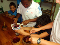 Dentro del taller, en el cual se está súper fresquito, Fernando les ha explicado muchas de las cualidades de las plantas aromáticas, y entre todas las posibilidades que tenían, que eran muchíiiiisimas... eligieron hacer vinagres de mora y manzana y repelente para mosquitos.